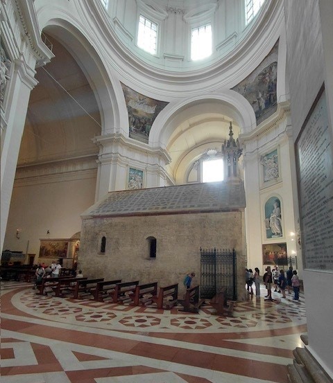 Am dritten Tag radelten wir am Ufer des Trasimenischen Sees, dem viertgrößten See Italiens, entlang und erreichten am Abend Perugia. Von dort aus konnten wir schon auf einem Hügel Assisi sehen. Am vierten Tag freute ich mich besonders, weil wir einen Zwischenstopp bei der Kirche Santa Maria degli Angeli bei Assisi einlegten. Diese Basilika wurde um die Portiunkula-Kapelle erbaut. Dort fand Franziskus 1208 Zuflucht, restaurierte diese Kapelle und gründete den Franziskanerorden, dem sich innerhalb kurzer Zeit 5000 Brüder anschlossen. In der Basilika sangen wir den Sonnengesang, den Franziskus vor genau 800 Jahren verfasste. Miriam begleitete uns mit ihrer Gitarre und stimmte dann noch einige Taizé-Lieder an. Es war sehr berührend, weil auch einige andere Besucher der Kirche mitsangen und ein Franziskaner sich bei uns dafür bedankte.